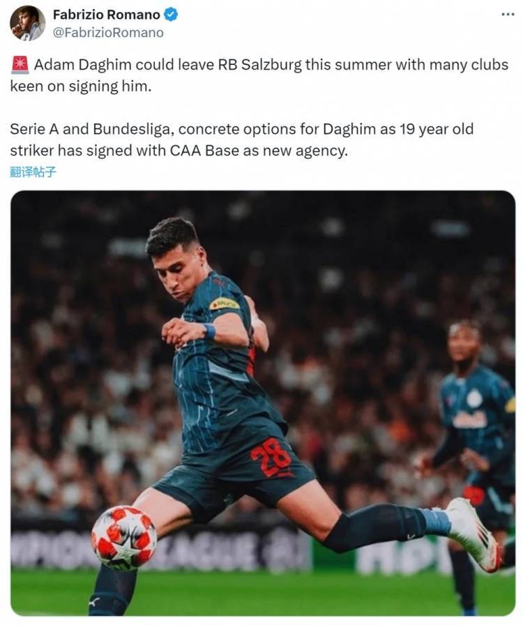 罗马诺:萨尔茨堡19岁前锋达吉姆可能离队,意甲德甲是潜在目的地